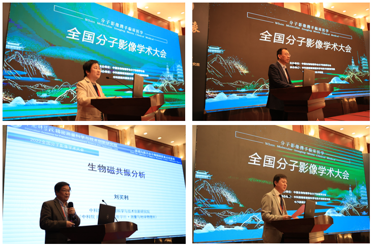 大会期间,徐涛院士以“超分辨光镜-电镜关联成像技术”为题、谭蔚泓院士以“用核酸适体点亮癌症”为题、顾宁院士以“生物医学磁性微纳材料与技术”为题,刘买利院士以“生物磁共振分析”为题做了院士特邀报告。然后以分会场形式,邀请了分子影像与医学影像领域30余位知名专家做了报告。会场中报告精彩、研讨提问踊跃、现场学术氛围浓厚。会议还展示了支持学术期刊《磁共振快报(英文)》《波谱学杂志》的相关成果。